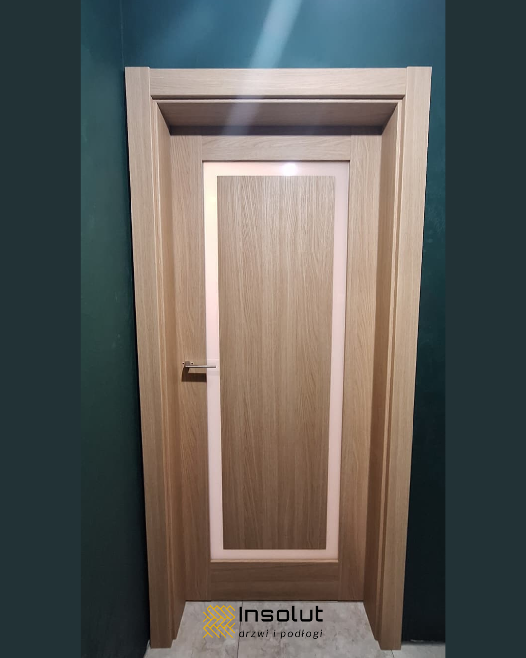 Właśnie zakończyliśmy montaż drzwi wewnętrznych Barański DRZWI Modern G.1 w kolorze naturalnego dębu. Model ten łączy ciepło drewna z nowoczesną linią oraz matowym szkłem, które: