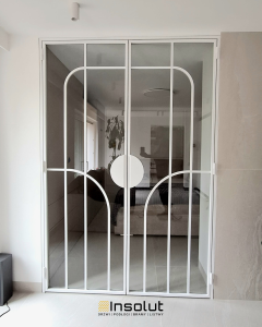 Tym razem montaż białych drzwi loftowych ze szprosami w łuku, które świetnie wpisują się w nowoczesne i eleganckie wnętrze. Geometryczny podział szkła z charakterystycznymi łukami nadaje drzwiom lekkości i wyjątkowego stylu – to detal, który od razu przyciąga wzrok.